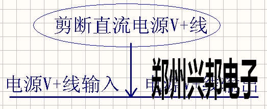 將一根直流電V+線剪斷,一側為直流電V+的輸入,另一側為直流電V+的輸出;如下圖1-3所示