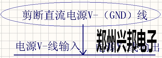 將一根直流電V-線剪斷,一側為直流電V-的輸入,另一側為直流電V-的輸出;如下圖1-4所示