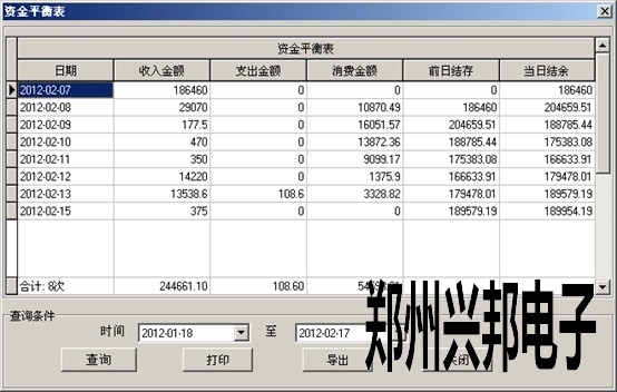 3.數據管理-資金明細表中可以根據標志‘收取卡本金’查詢出收取卡本金合計:52020元,189954.19-52020=137934.19元
