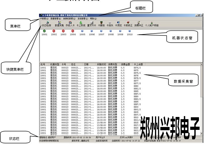 4)數(shù)據(jù)采集窗口用于查看數(shù)據(jù)的采集情況,在進行消費的時候,最好不要對收費機進行數(shù)據(jù)采集,我們不建議邊消費邊采集數(shù)據(jù)。