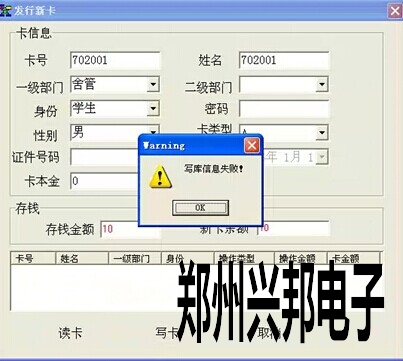 今天碰到一個客戶,發行新卡的時候,讀卡正常,但無法修改卡號,別的欄可以修改.發卡也會提示”寫庫信息失敗”.