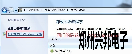 2. 點擊左側“打開或關閉Windows功能”。