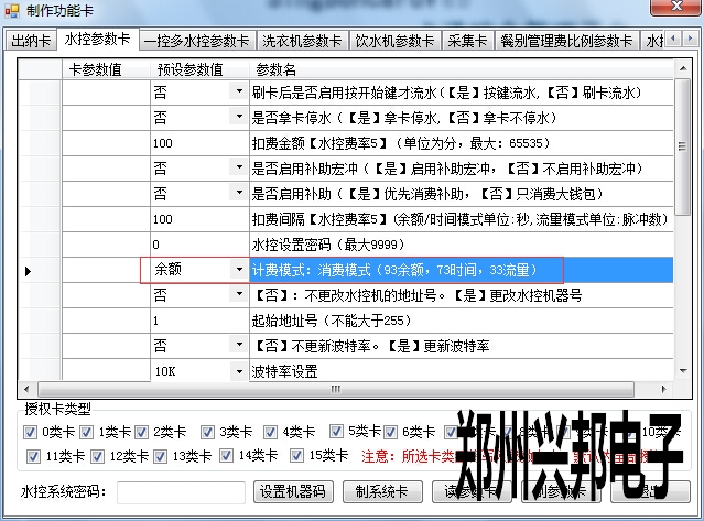 基于互聯(lián)網(wǎng)一卡通平臺(tái)的GPRS水控,在制卡中心--功能卡制作--水控參數(shù)卡中,可以看到有三種計(jì)費(fèi)模式