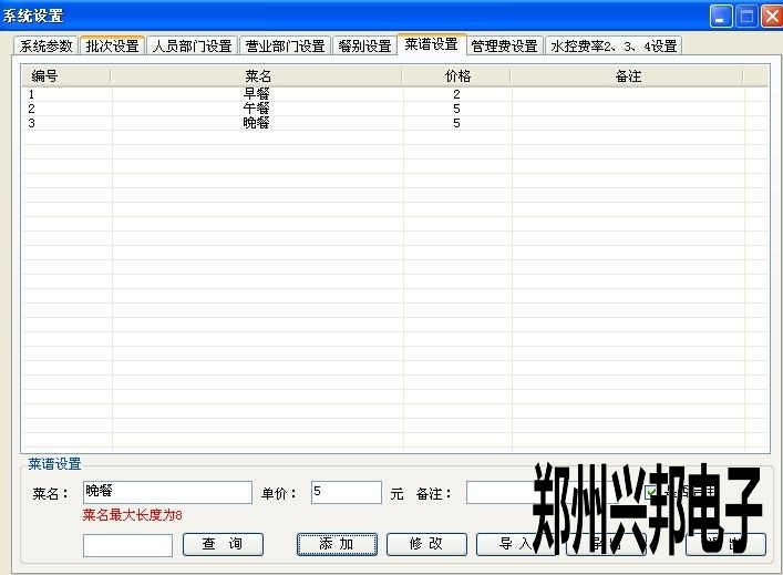 1、在軟件上先添加一下早中晚餐的金額。在系統(tǒng)設置里面的菜譜設置里設置是。