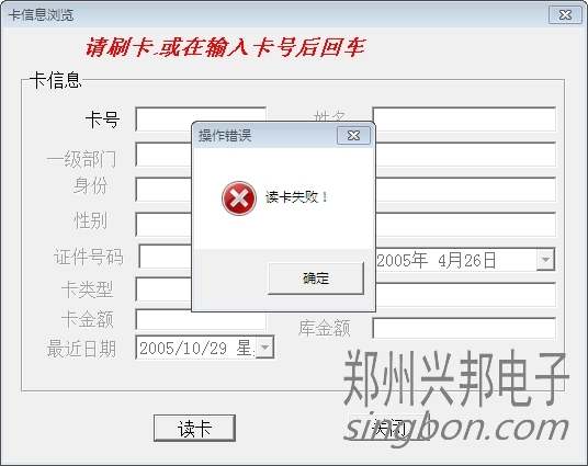 在讀卡器上讀卡時提示讀卡失??!