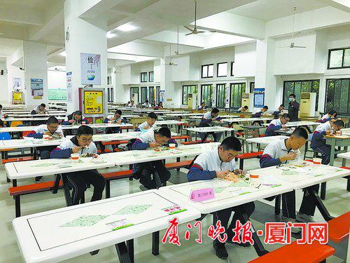 廈門二中(五緣校區)高三文理科分兩棟樓上課,一層5間教室只有兩到三個班在用,班級與班級用空教室隔開。自習課將一個班拆成兩個教室上自習,讓學習環境更寬松,空氣更通暢。另外,同一層兩個班學生走不同方向的樓梯。課間上廁所,不同班級也有區分,最大限度解決學生課間上廁所的聚集擁堵問題。